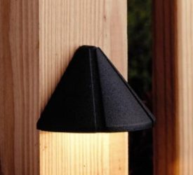 Post cap lights are installed on the top of rail posts and come in sizes to fit all of our decking post materials. These lights create a beautiful ambient light that is perfect for hosting parties or intimate gatherings on your deck. They also come standard with LED fixtures and cost $85-$90 per light including installation.